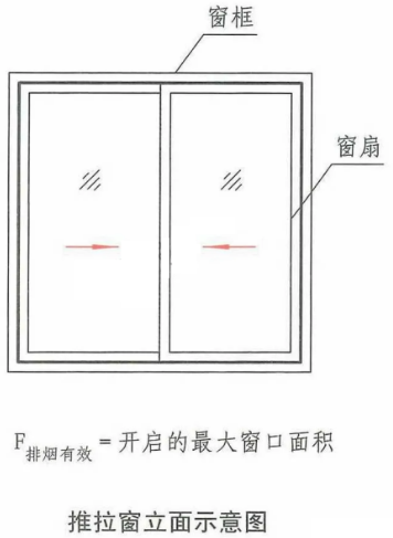 当采用推拉窗时,其面积应按开启的最大窗口面积计算:排烟有效面积=可开启窗口的面积